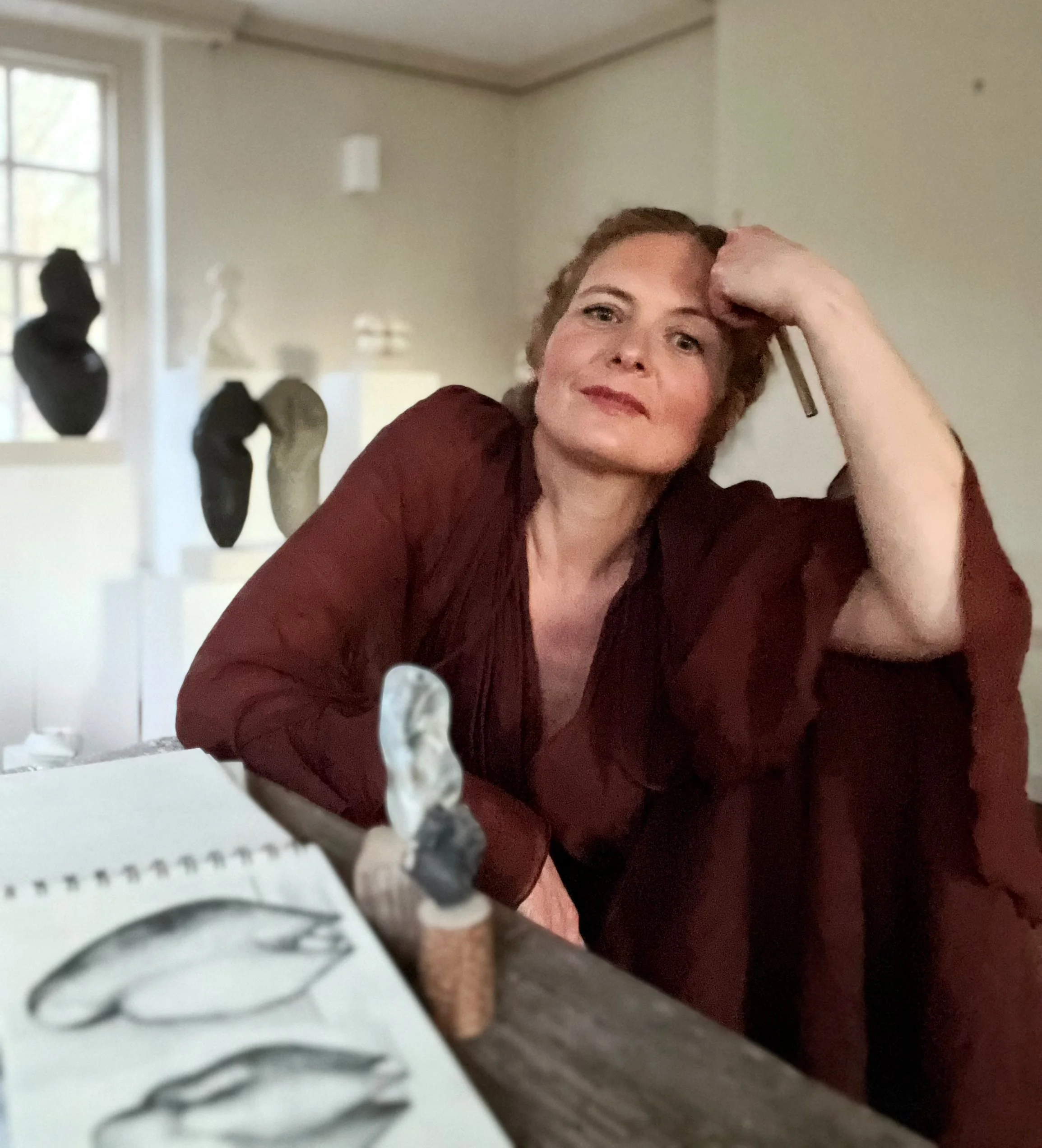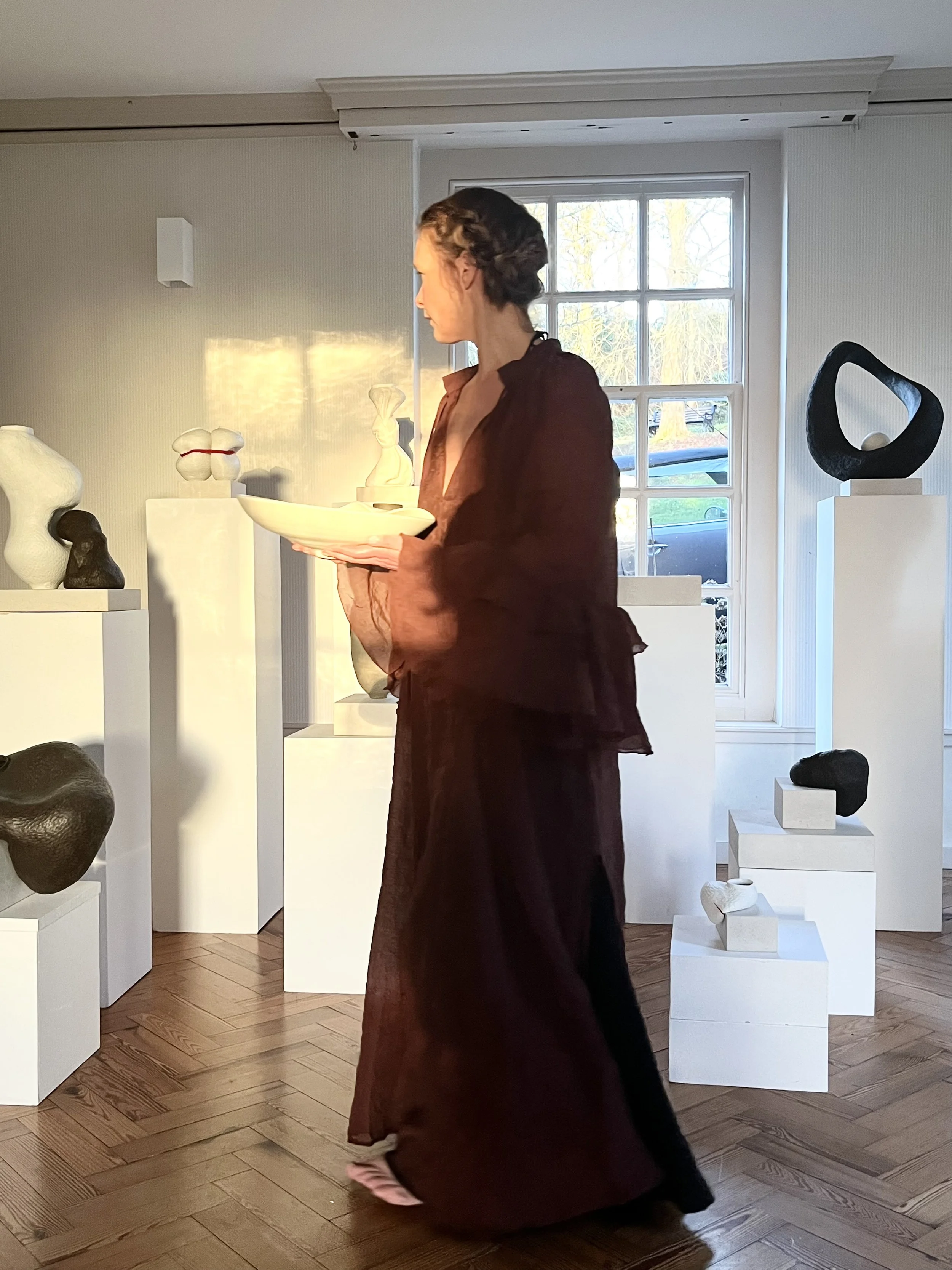 Holmes ceramic sculptures explore the complexity of human relationships, both between individuals and within the self. Through an intuitive process that pushes the limits of clay, she create gestural forms that twist, stretch, and expand into organic, human-like figures. These works inhabit a space of continual movement and transformation, capturing moments of tension, growth, and becoming. The collection brings together hand-built and wheel-thrown elements, each subsequently altered to emphasise irregularity and expression. Central to the work is the interplay of form, texture, and material—contrasting the delicacy of porcelain with the density of black stoneware. These sculptures function as vessels of narrative, embodying individuality, resilience, and the capacity for change. Ceramics, as a medium, carries its own metaphor: shaped through pressure, fire, and time, clay transforms into something enduring—reflecting the human experience of adaptation and renewal.
