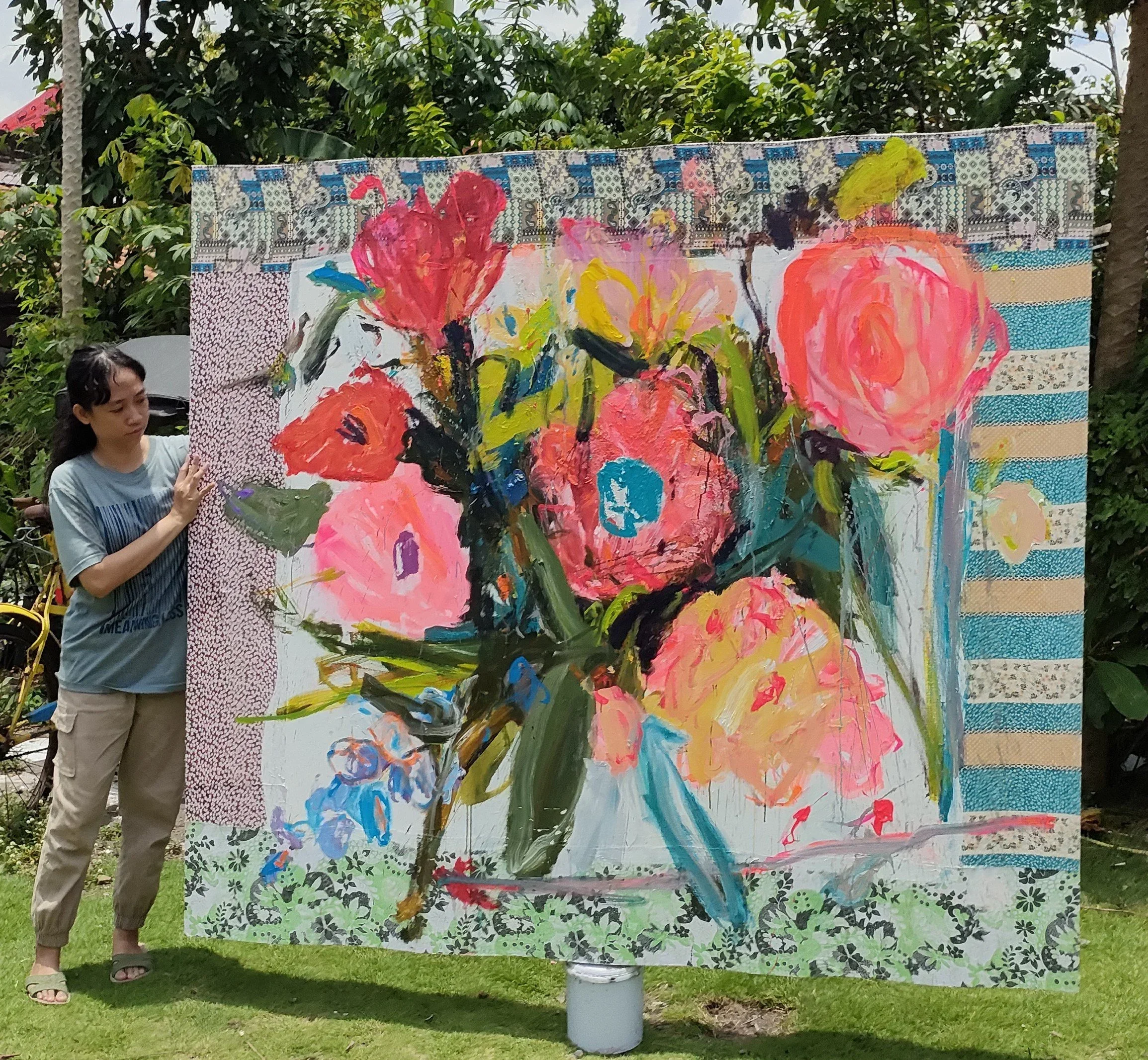 Born in Bekasi, West Java, Indonesia in 1993, Ramadhyan Putri Pertiwi lives and works in Yogyakarta, Indonesia. Rama studied Painting at the Indonesian Institute of The Arts Yogyakarta and graduated in 2018. The main concept of her paintings is the abstraction of plants or flora, in an expressionist style, using firm and strong brush strokes. The energetic and curved strokes is a symbol of strength and dynamism. For Rama, plants and flora have a life cycle that is no different to humans. They face various obstacles to be able to grow in their environment.