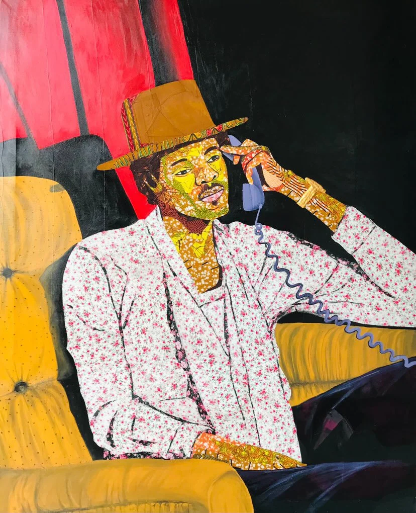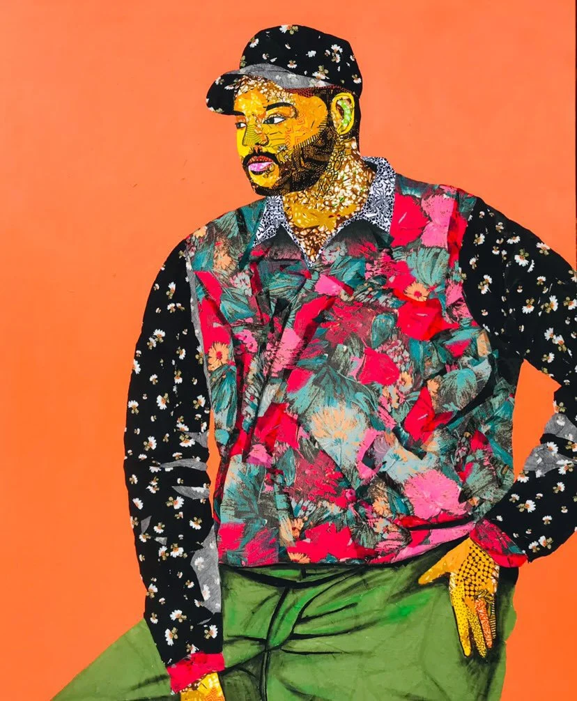 Jeffery Baidoo is his name, a Ghanaian contemporary visual artist who resides in Greater Accra . As a contemporary artist, Jeffery gets inspiration from working with various materials, especially fabrics and newspapers to create colourful collages full of life on his canvas. By using various of fabrics within his artistry, Jeffery has some iconic visual representations of history, philosophy, ethics, oral literature, religious belief, social values, political and royalty. In spotting the potential within those colourful “fabric”, he began to make mental comparisons on canvas.