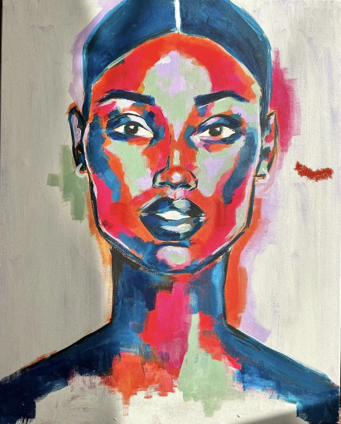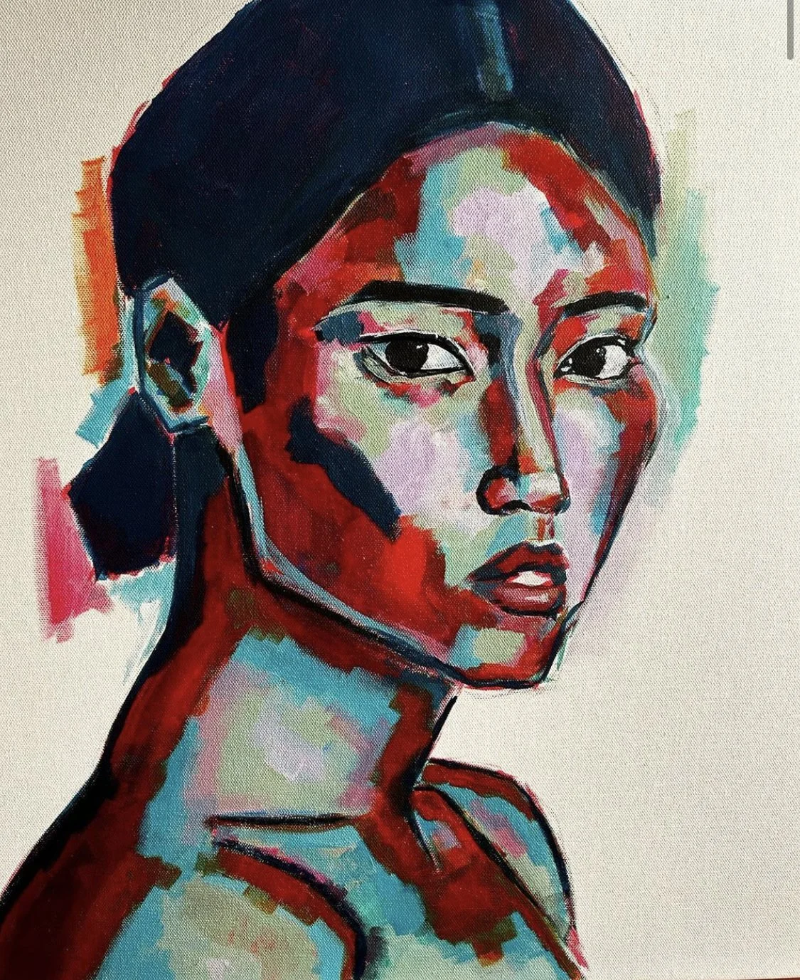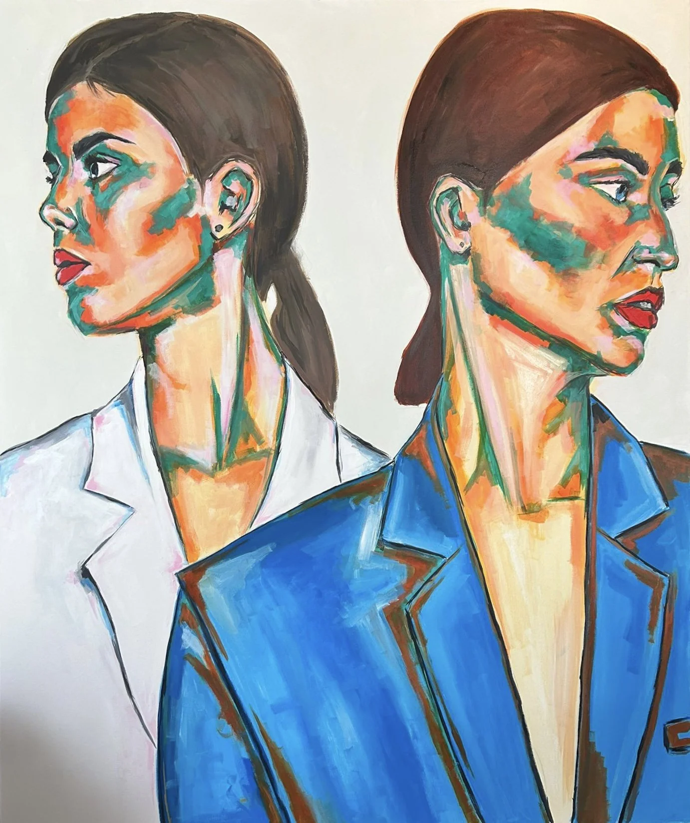 Megan is constantly working on pushing the boundaries of traditional portraiture by distorting the face while keeping it identifiable. Inspired by artists such as Jenny Saville and Francis Bacon whose works are able to portray real and identifiable emotions through manipulation of face or body in a dramatic way yet still keeping it recognisable. Megan’s artistic process involves taking images a step from reality by either experimenting with textures, brushstrokes or using different mediums. Her recent focus on how colour can change and how a portrait is received, delves deeply into the psychology of colour. Whether she can use her works to provoke a reaction or capture attention are key components of Megan’s work.