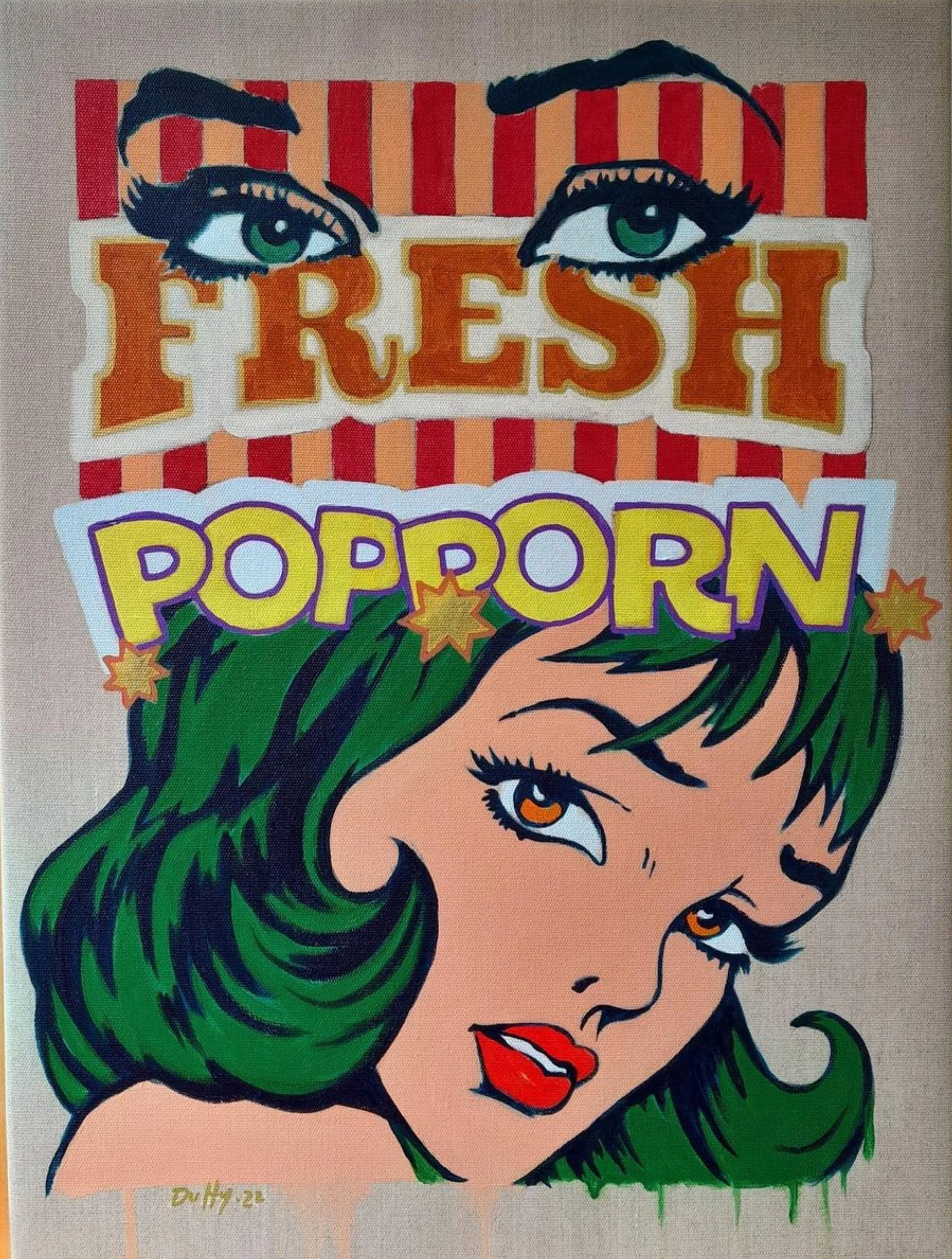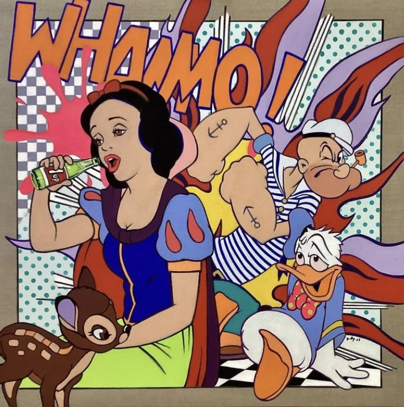 His style draws inspiration from Pop art icons like Andy Warhol, Roy Lichtenstein and Tom Wesselman, as well as the geometric complexities of cubism by Pablo Picasso. This influence is evident in his technique of breaking down images into smaller geometric shapes to create intricate details. His use of vibrant colours clearly demonstrates his fascination with Disney and the dynamic visuals of Nintendo video games which he loved to play as a child. His formal education in digital animation provided him with the platform to create art and enriched his understanding of colour rendering. He transforms his digital creations into paintings, injecting it with energy, excitement, joy and enthusiasm.